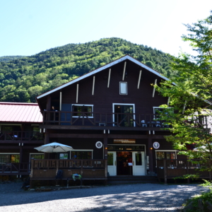 槍ヶ岳山荘(20分)>>殺生ヒュッテ(20分)>>坊主の岩小屋(60分)>>天狗原分岐(50分)>>大曲(60分)>>槍沢ロッヂ(30分)>>一ノ俣(50分)>>横尾(50分)>>新村橋(20分)>>徳沢(60分)>>明神分岐(60分)>>上高地バスターミナル